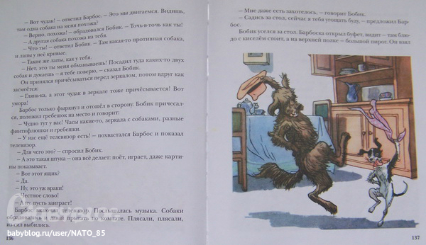 Сама в детстве обожала эти рассказы и сейчас перечитываю с дочкой вместе с большим удовольствием! И конечно в любимчиках и у нас история про Бобика и Барбоса! Думаю, большинство детей обожает этот мультик и чтобы смотреть его меньше - мы читаем)))