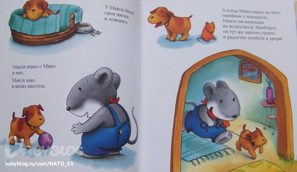 Не так давно полюбился Лизе мышонок Мико, теперь с большой охотой слушаем и эту книжку! На сей раз милый мышонок очень хочет завести собаку, но мама объясняет, что это пока невозможно... И о чудо! Мико встречается с замечательным маленьким щенком в соседнем доме, он с радостью помогает хозяйке ухаживать за ним и тот становится как будто и ЕГО щенком!