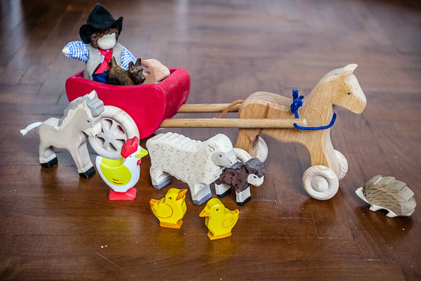 В соновном мы играем деревянными игрушками. Любим вальдорфские. Но и пластиковыми не брезгуем)