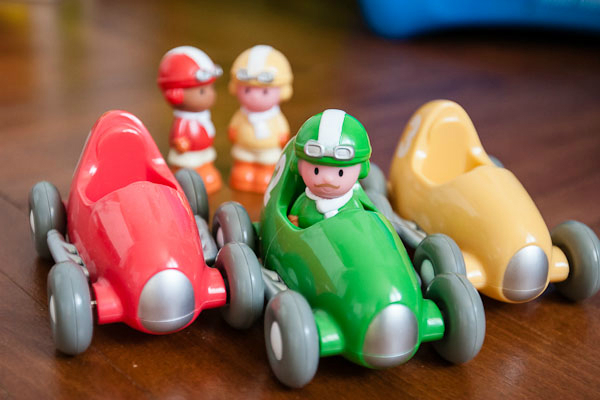 Пластиковые гоночные болиды из ELC. Замечательно ездят! Учим цвета, кактаем человечков