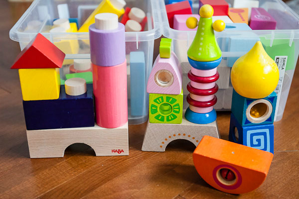Еще кубики Haba из разных наборов. Типа деревянного лего и просто красивые кубики разных форм.