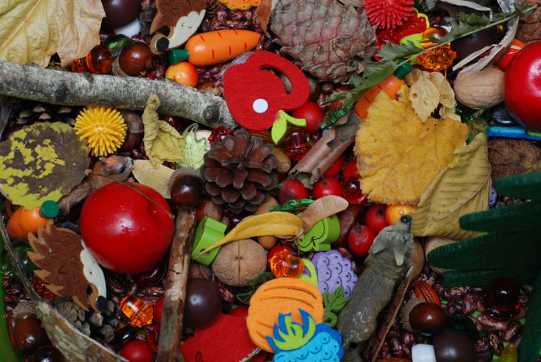 Добавляю. Саша просто пищала от восторга! Мише тоже было очень интересно, но недолго. Провозились минут 20, потом Мишаня заскучал, сортировать не хотел. Зверюшек покормили, он вспомнил, что сюда нужен еще кабан, видимо, желуди ему про кабана напомнили. Завтра достану машинки грузовики, экскаваторы, надеюсь еще поиграемся!