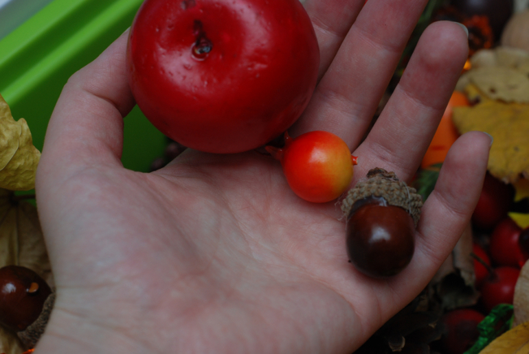 Саше очень понравились шишки, листочки, палочки, а вот фикспрайсовские штучки совсем не заинтересовали!