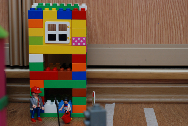Давненько вынашиваю идею города, помнится еще год назад занялась поклейкой города, так рулон размером в 4 листа А1 так и лежит недоделанный. Потом хотела бумажный город, но тоже очень трудоемко, оно-то ладно, если я была бы уверена, что его через 5 минут не сомнут! А тут увидела идею с малярным скотчем, прикупила и лежал он лежал... наконец дождался!
