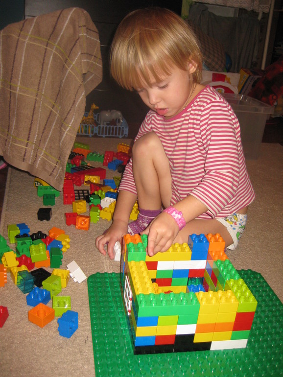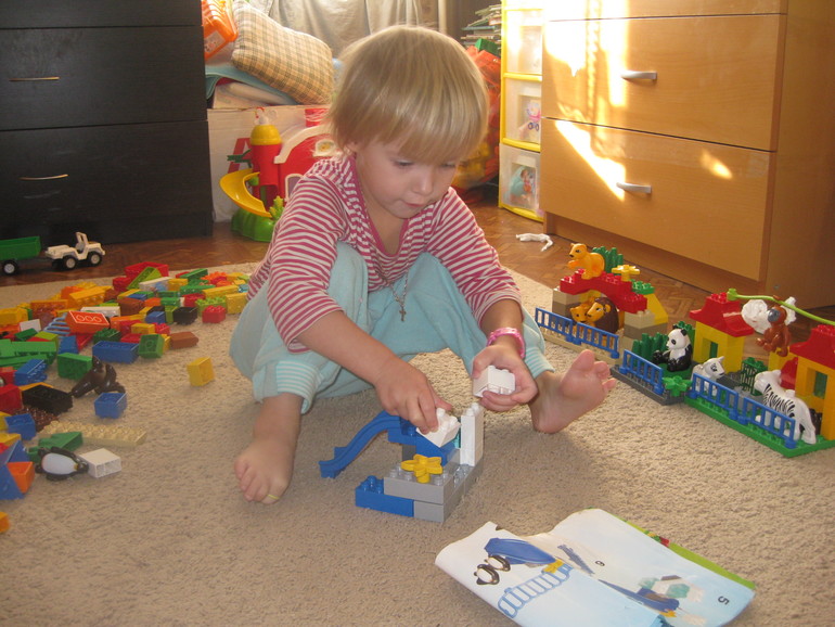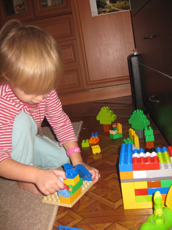Нашей любимой и неизменной постройкой остается - садик, в прошлом году когда дочь начала ходить в детский сад я специально проигрывала эту тему, мы строили сад, расставляли кроватки, стульчики, столики и обыгрывали с помощью человечков день в саду, а самое главное - уход и приход мамы! Хотя с садом сейчас все ок, но Аня все равно его строит и играет: