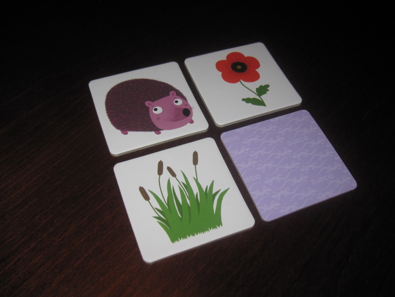Карточки очень приятно держать в руках. И на мой взгляд они просто не убиваемы - погнуть, помять их невозможно. Мой ребенок уже вырос из этой игры, а карточки до сих пор как новые. Фигурки животных и рисунки - очаровательны.