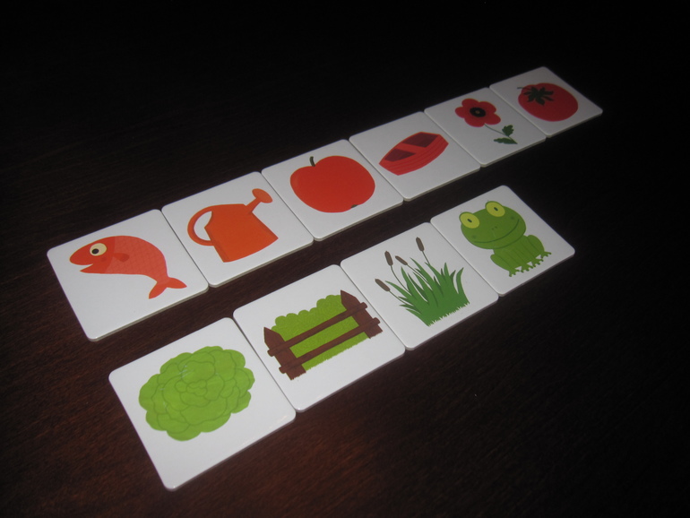 Правила предлагают только один вариант игры, но карточки настолько приятные, что хочется придумать еще игры с ними. Так, если вашему ребенку 2.5-3.5 года, можно в дополнение придумать пару-тройку простых минутных игр/заданий - например, найди все карточки красного/зеленого цвета, найди все фрукты/овощи/птиц и т.д.