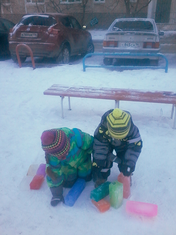 Укладывали их друг за другом делая скользкую дорогу, пытались по ней пройти. Строили башни "у кого выше" и в конце концов разругались вдрызг((( Пришлось кирпичики сложить в пакетик ,убрать в багажник с надеждой продолжить игру как-нибудь. Благо зима у нас долгая...