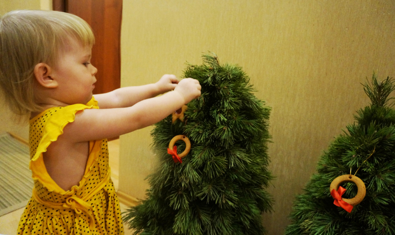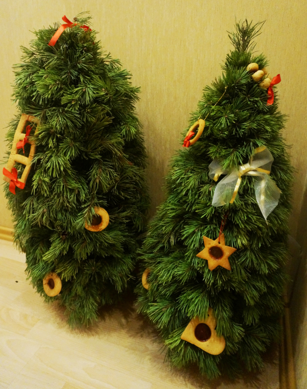 Игры и игрушки от 0 до 99 (Про игры и игрушки которые подойдут и большим и маленьким)Папа нам с Машей принес 2 чудные сосенки. Игрушек в гараже мы не нашли, пришлось ваять свои! Месили, лепили, пекли рождественское, медовое, пряное, ВИТРАЖНОЕ печенье! Рецепт может подойти любой для имбирных человечков, а чтобы сделать витраж нужно мелко порубить конфеты-леденцы, заполнить серединки,запечь, а потом остудить. Дырочки для ленточек мы делали коктейльной соломкой. И вот наши елочки нарядные!!!Ура!