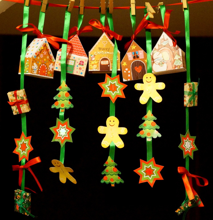 Преимущественно клеила я, дети только вырезали простые элементы и украшали дом сладостями. Работа оказалась непростой - деталей очень много, и все их мы распечатали из плотного картона.