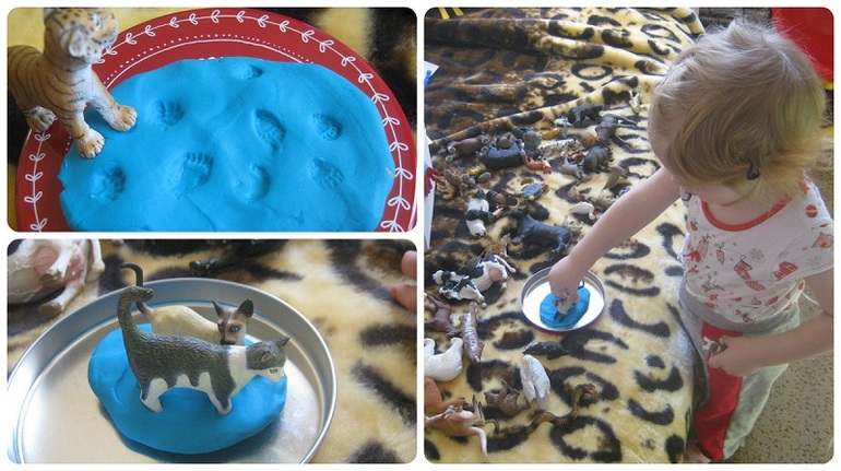 Еще у нас популярная игра - это отпечатки животных на пластилине. Очень надолго увлекает ребенка.