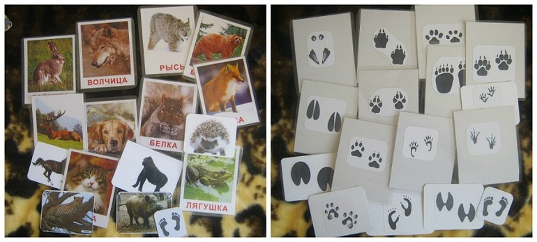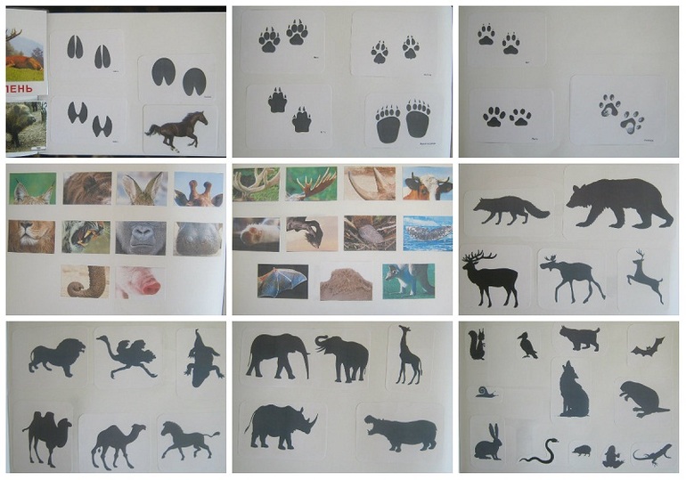 Все следы наклеены на обороте карточек с животными. И еще в альбоме.