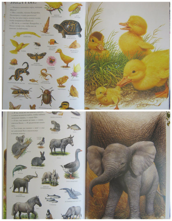 А в этой книге животные, птицы, насекомые и прочие разбиты по цветам! Поэтому у нас развороты с желтыми, зелеными, красными, голубыми, розовыми и другими.