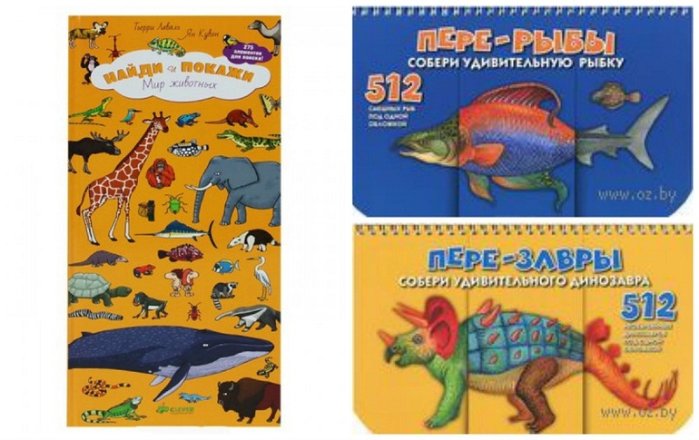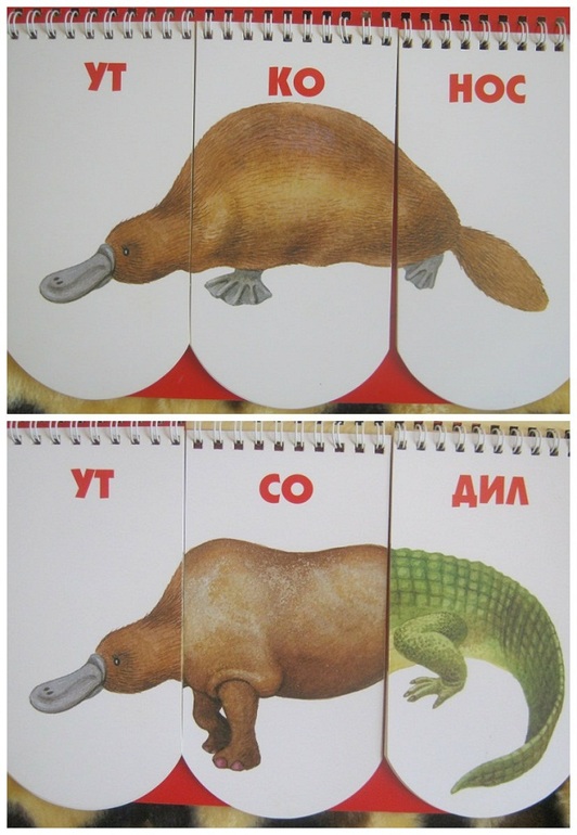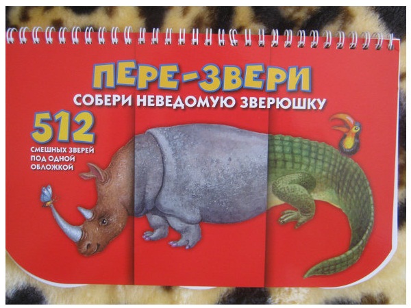 Небольшая книжечка, где из частей всего 8 животных можно собрать свое неведомое животное, а для ребят постарше еще и прочитать название неведомой зверюшки. Мы пока ограничиваемся пролистыванием и рассматриванием. Или я оставляю у животного одну не его часть и предлагаю сложить правильно.