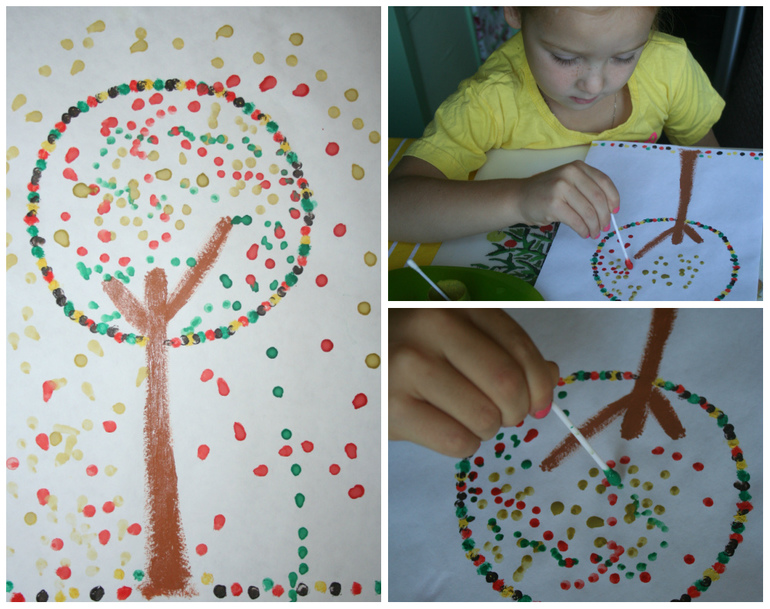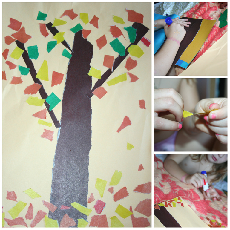 Не спрашивайте почему деревья? Наверное, мама просто помешалась на этой конструкции. Но я просто не могу остановиться, и вновь и вновь предлагаю Камилке сотворить осеннее деревцо, и к счастью, она не против :-)