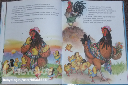 Текст действительно так себе. Даже ребенок спросил "Мам, а почему курочка храбрая, если она все время просидела дрожа на дереве и ее петух спасал?", а на третьей странице второй сказки попросил другую книжку. Эх,жаль......