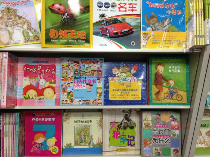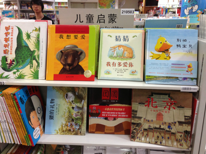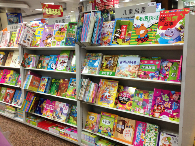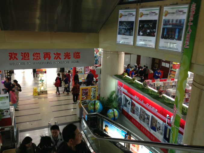 Вот всё это здание с красными буквами и есть Пекинский книжный. Несколько этажей, детские книги на втором этаже.