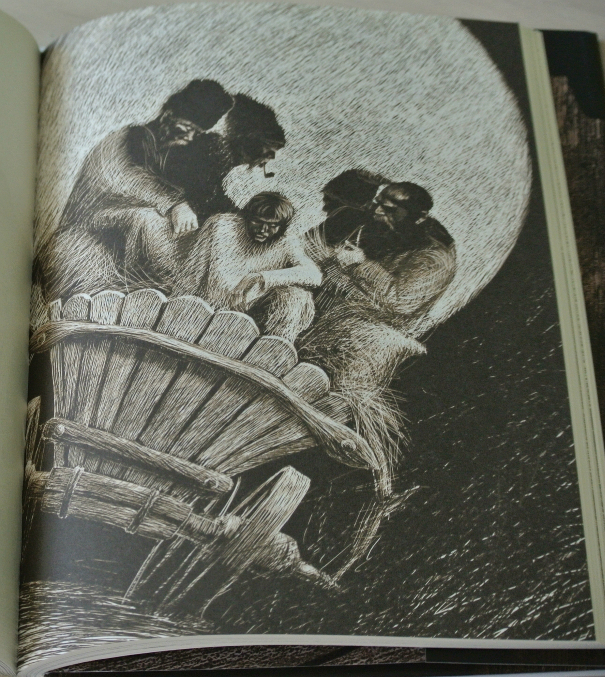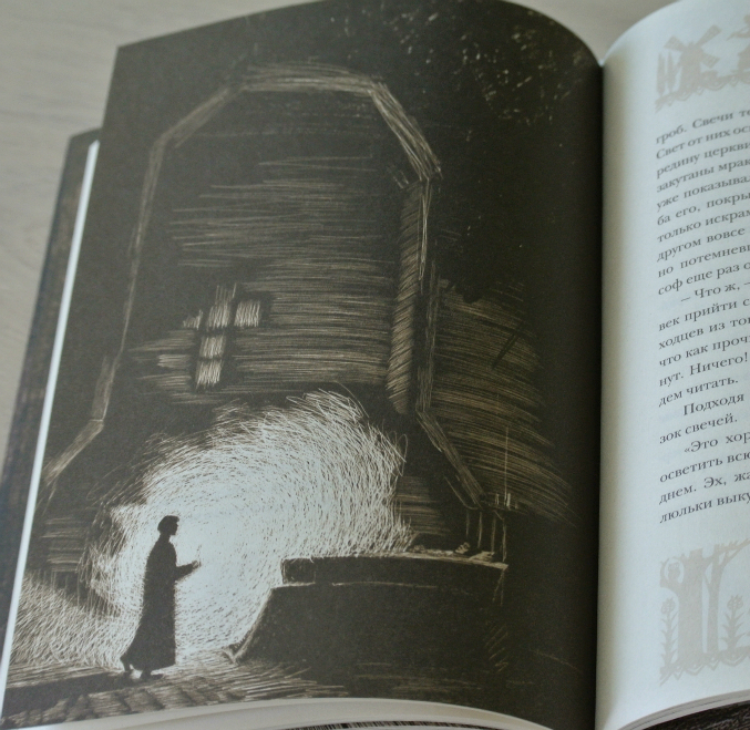 И вот наконец-то она у меня. Мальчишкам до нее еще расти и расти. А я наслаждалась, рассматривая и суперобложку, и саму обложку (ну не понимаю я ценность суперов, тем более если здесь полная аналогия). И наконец-то те самые иллюстрации. Книга внешне кстати кажется тяеленькой, а на самом деле оч.легкая из-за офсета. Ощущение рыхлости, но не неприятное, а скорее даже наоборот.