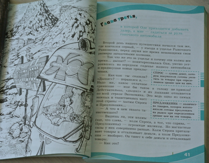 К чему веду! Бубнил наш папа до того времени, пока не увидел на столе рядом с ужином любезно пододвинутую книжку "Удивительные приключения в стране Экономика".