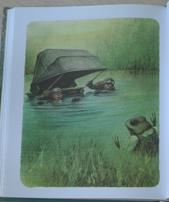 А вот Ветер в ивах... Я была в растерянности. Может потому, что в детстве я читала с другими иллюстрациями. Не помню художника, не помню иллюстрации. Но помню, что они были ДРУГИЕ. Более гладкие что-ли... Более солнечные... Что-то напоминающее Б.Поттер.... И я, завязанная на своих детских воспоминаниях, все до последнего брыкалась.