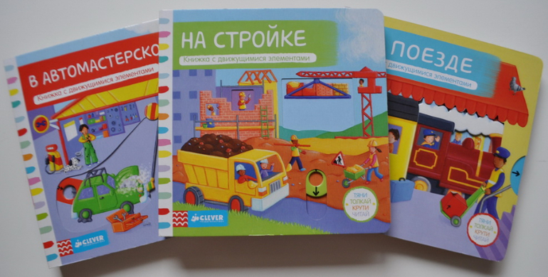 Книги - восторг ребенка. Все три вклдючают в себя то, что так любят мальчишки (ну и девочки, ага). Строительные и легковые машины, автомобильные запчасти, инструменты, поезда!