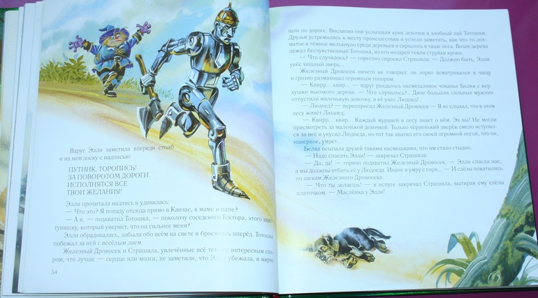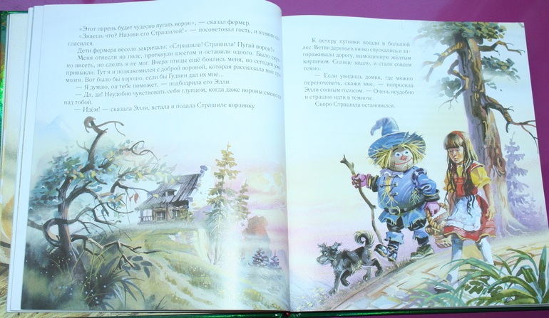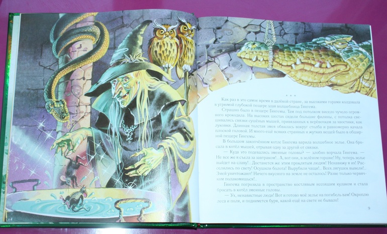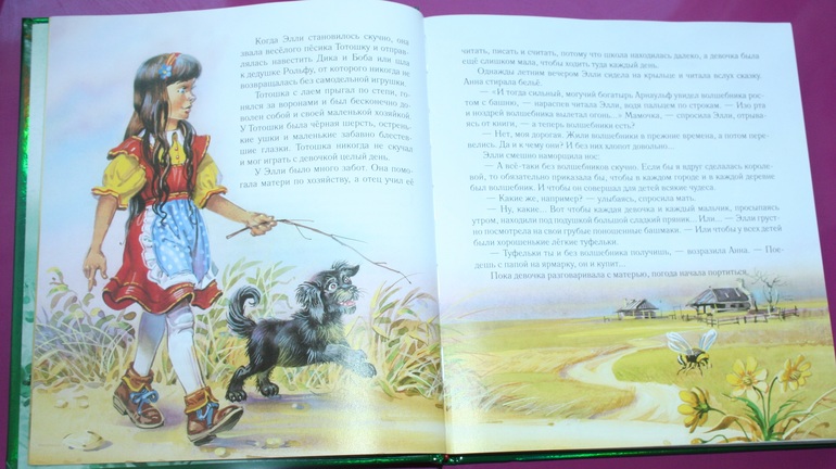 Именно эта пухленькая и зеленая книга сейчас скрашивает наши вечера. Еще два месяца назад, дочка не могла долго концентрировать внимание на сюжете этой книги, а теперь слушает запоем по несколько глав к ряду и с большим вниманием следит за развитием сюжета. Думаю, многие тонкости она еще не улавливает, но ведь всегда можно перечитать, главное, что переживает за судьбу героев и каждый вечер ждет новую "серию". А то как оформлена книга нас обеих приводит в восторг! Долго выбирала своего "Волшебника", и очень рада, что с первой попытки попала в "яблочко" :-)