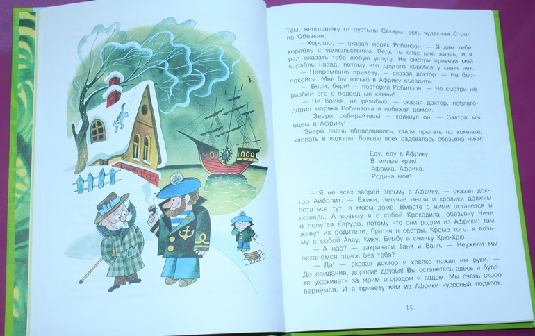 Это наш первый "сериал" :-) Примерно в три годика дочка уже с большим вниманием и достаточно долго слушала о приключениях Айболита в стране обезьян и о мальчике Пенте, похищенном злобными пиратами. То ли потому что герой был знаком ей с детства по стихам, то ли из-за достаточно коротких глав, но мы возвращались к этой книге много раз. Сейчас интерес поутих на фоне новых открытий, но иногда и Айболита перечитываем.