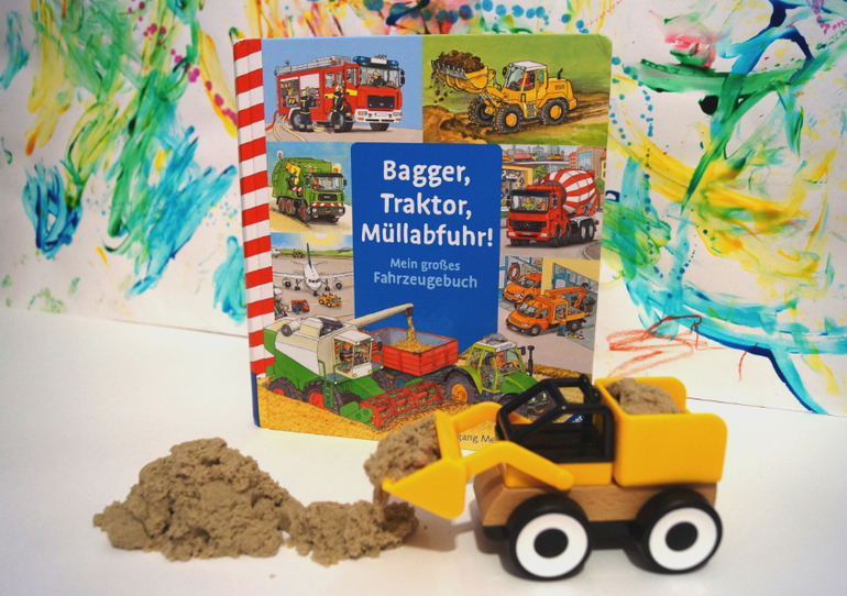 Это наша настольная.. настульная, напольная, окологоршочная и вообще рассматриваемая на всех поверхностях и в любое время суток книга. У ребёнка мания, на каждой прогулке она тащит меня мимо всех игровых площадок к Шёлковскому шоссе смотреть машины. А там, как на зло, как раз строят эстакаду и дублёры, и потому повсюду краны, катки, экскаваторы и прочие девчачьи радости, ага. Оттаскиваю с рёвом. Смотри, Алисончик, собачка (ёлочка, дядя, парад слонов), какой там! Мама, тут каток асфальтоукладочный, я буду смотреть, пока ноги в тротуар не вмёрзнут.