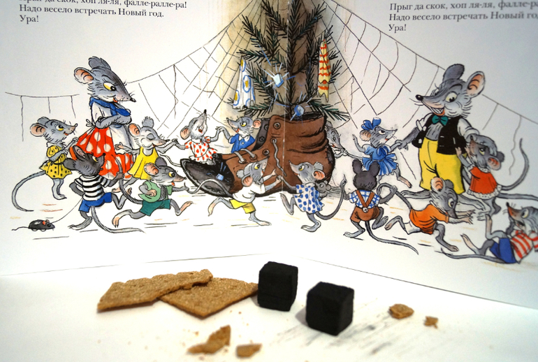 Книга, вызвавшая определённый резонанс среди родителей, считающих её жестокой, бессмысленной и вообще не для малышей, и книга, столь любимая моим ребёнком. Я обязательно буду писать о ней отдельный пост со всеми впечатлениями, размышлениями и разъяснениями. Здесь же, помня о сестре таланта, скажу только, что Алиска изрядно веселится над тем, как я пою песенку мышки, повторяет "пол-пол-пол", кормит мышь, выучила и произносит пирожковые начинки в нужной последовательности и хохочет над лопнувшим животом, артистично изображая сей ужасный момент и сопровождая его громогласным "бах-тыщщ!".