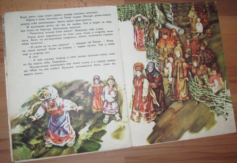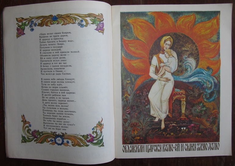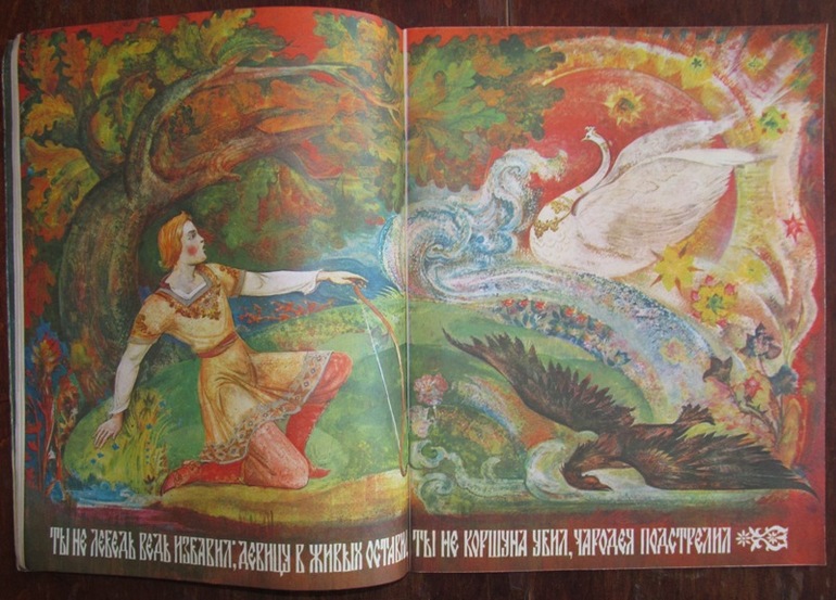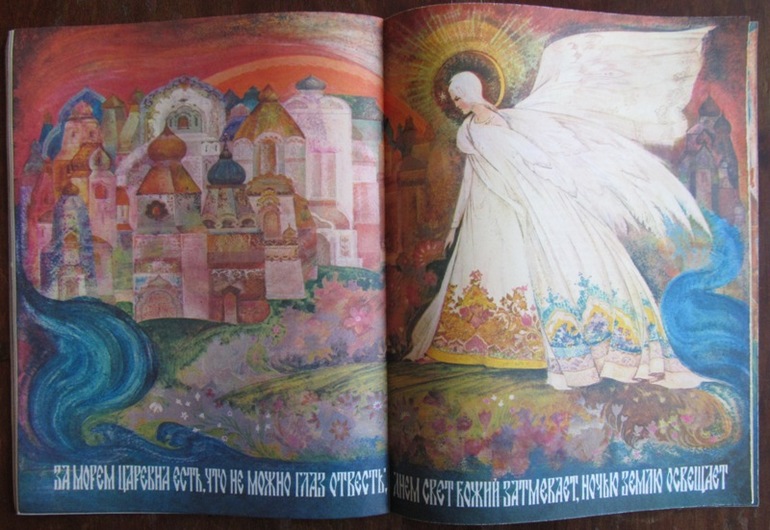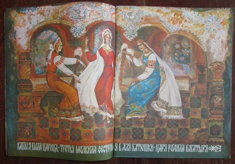 Замечу еще, что новая такая же книга - она совсем не та, что была у вас в детстве. Это я на «Царе Салтане» ясно увидела. Новая - она всё же чужая. Сначала мне даже показалось, что цвета не те, печать не та. Сверяла с лупой! Все полностью одинаковое, а вот души моей в новой книге уже нет. Вся душа в моей старенькой осталась! Так что новую уже будет ребенок оживлять, жизнь дарить )) Пока она у нас как музейный экспонат ))