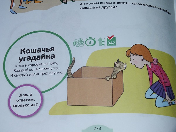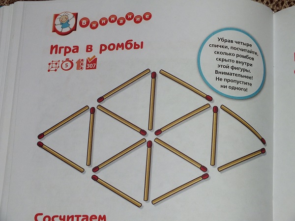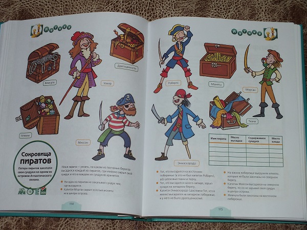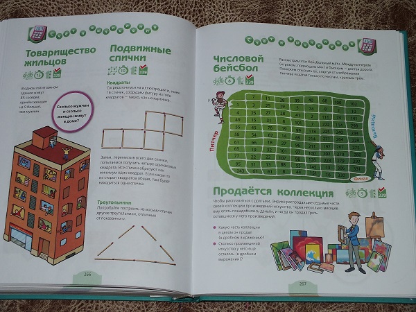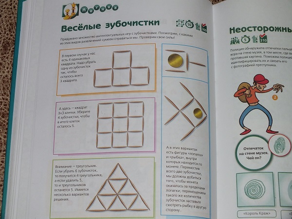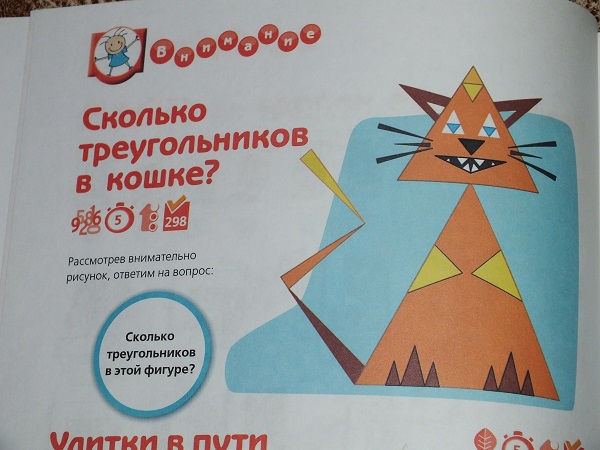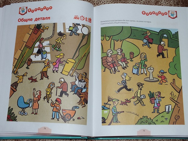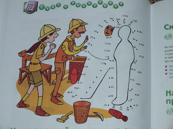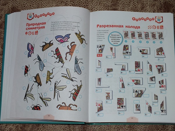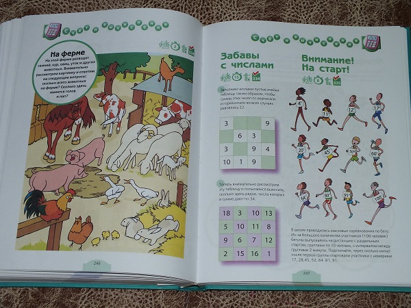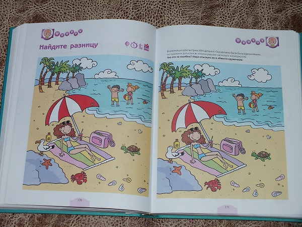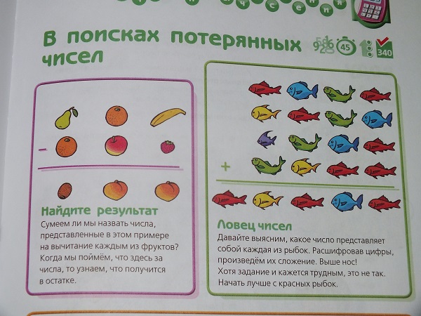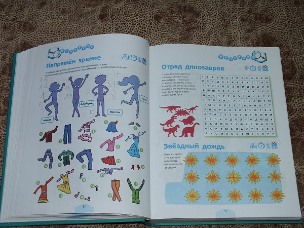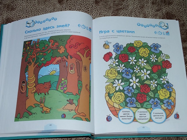 В каждом разделе большое количество разнообразных заданий: от гляделок и до математических подсчетов.