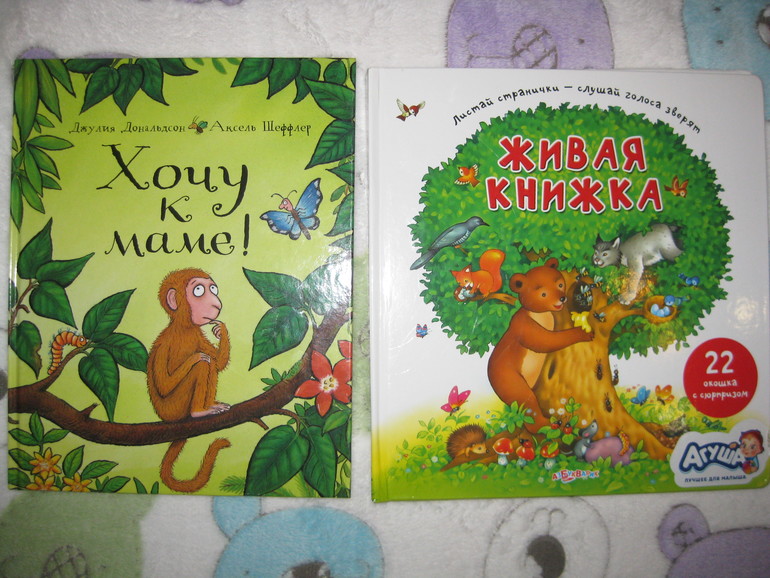 Baby Animals книжка с тактильными вставками, сейчас полно похожих и на русском языке, главное если покупаете ребенку до года, то лучше брать небольшую книгу, легкую, к примеру всем известный Зоопарк Ван Флита до года ребенку нереально было дать, только из маминых рук, т.к. тяжелый и громозкий