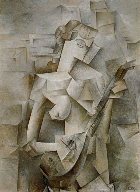 И если первая скорее всего скажет " совсем с ума посходили, пить надо меньше", то вторая расскажет нам, что это "Пикассо. Девушка с мандолиной. Начальный этап периода аналитического кубизма. Фигура девушки (Фанни Телье) и фон - единая живописная вселенная, построенная художником из однотипных "блоков". Пространство как скульптура. Художник разбирает мир на элементы и собирает новую реальность - реальность художественного произведения".