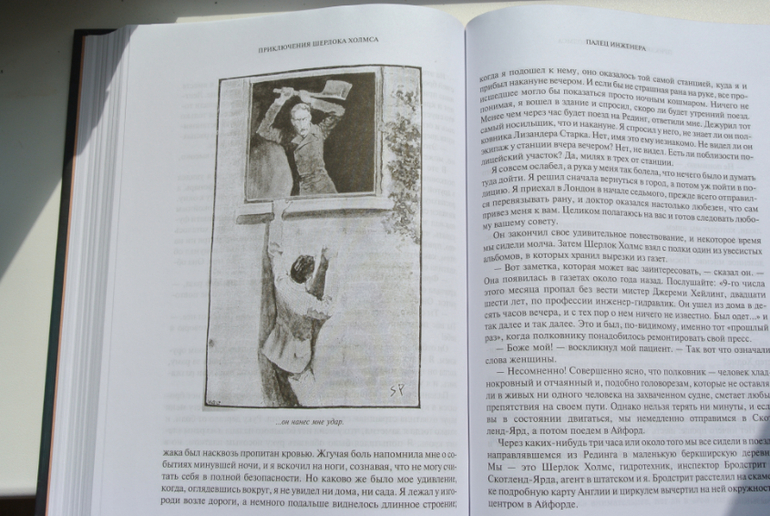 Я, если честно, Шерлока не планировала покупать. Думала - в электронке мб прокатит? Или у свекров взять почитать... Но как-то сам собой взгляд упал на это издание с небольшими ч/б иллюстрациями. Иллюстрации оказались очень даже занятными. Бумага тонковата, но не критично. Белая, гладкая. Зато книжка в 320 страниц не очень толстая.