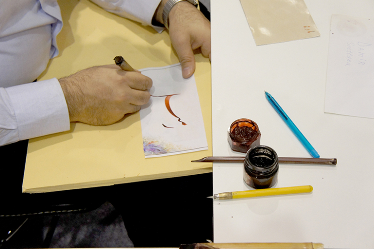 Посмотрели на иранском стенде как пишут арабской вязью имена.