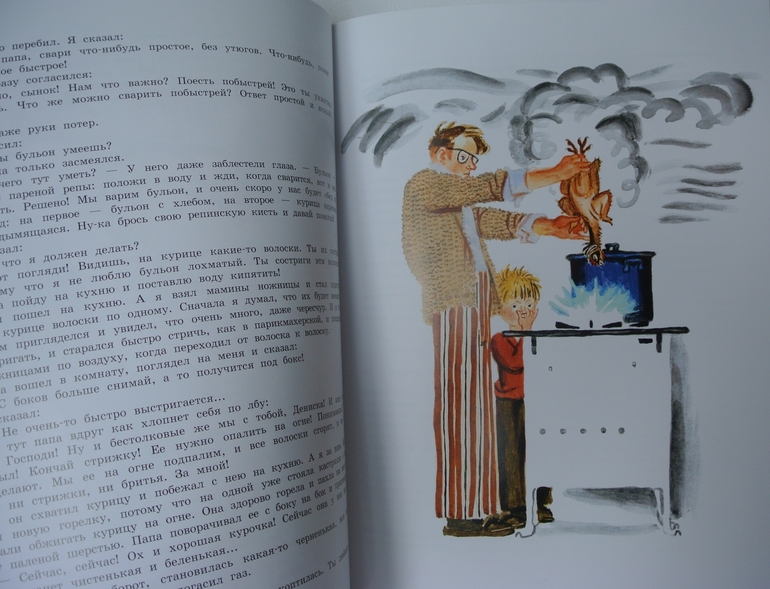 Книгу купила из-за полного (?) цикла Денискиных рассказов, а также из-за иллюстраций Лосина. Уж очень они хороши, хоть и нарисованы в разное время (разница видна). Шепнул бы мне кто заранее, что сама книга тяжелая из-за меловки, а также шрифт в книге мелкий, я бы еще подумала - покупать или нет.