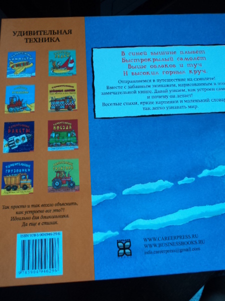 В конце каждой из книг есть незамысловатая схема, где отмечены все детали того или иного вида техники. Особенно здорово прочесть такие книги ребенку, если Вы собираетесь в отпуск на самолете или поезде, чтобы он знал, что его ждет.