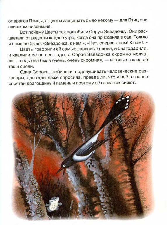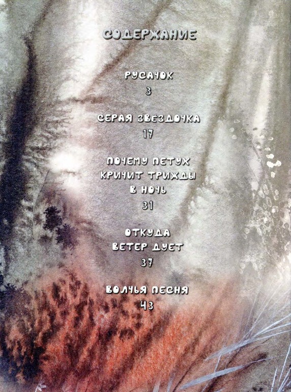В общем, книгу очень рекомендую, как прозу для малышей от 2-х лет! Сказки короткие (кроме "Серой звездочки"), рисунки яркие, но при этом гамма очень сдержанная, не кислотная. Цвета подобраны гармонично, и создают ощущение присутствия в осеннем лесу, где жил Русачок, или ночи в деревне, где жил Петух. Но при этом, они совсем не мрачные!