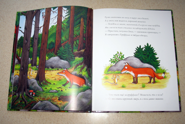"Груффало" - история о маленьком мышонке, которая зацепила и младшего сына. Это первая книга Джулии Дональдсон в нашем доме. Потом я купила ещё и другие. Но наша дружба с этим автором началась с неё. Рисунки Аксель Шеффлер прекрасны и детальны. В общем из Дональдсон читаем с младшим пока только её и "Хочу к маме".