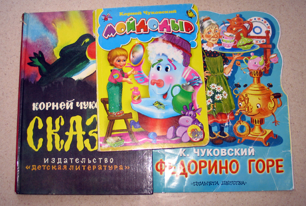 Не миновал в этом месяце нас и Чуковский. Читаем не все произведения, а только любимые. Если конкретно, то это Путаница, Телефон, Мойдодыр, Федорино горе.
