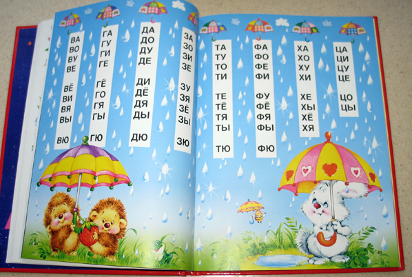 Букварь Бахтиной у нас уже давно. Долго я сомневалась, какой купить, но решила купить всё-таки именно его. По нему я учила буквы ещё со старшим сыном. Хороший, красочный. Изучение идёт от букв, потом слоги, потом несложные слова. На мой взгляд очень удобно.