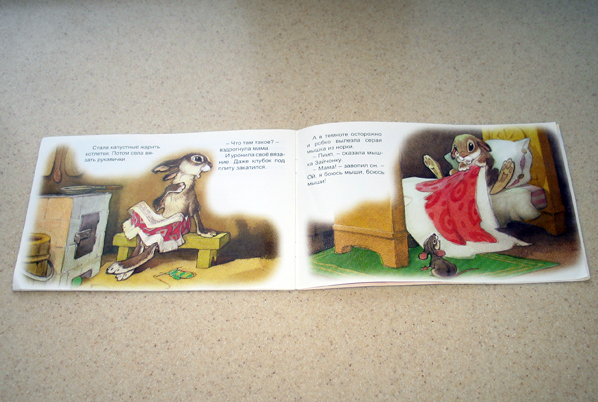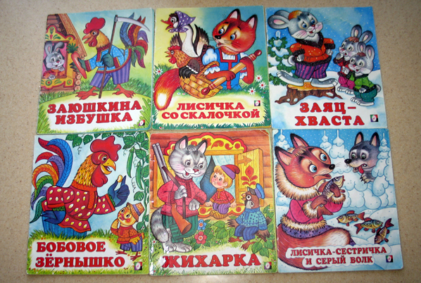 Это серия книг "Русские народные сказки" от издательства Фламинго. Мы их используем как книги переходного периода от картонок к книгам с тоненькими страницами. Они недорогие и если дети их порвут не жалко. Но у нас пока пострадал только "Волк и семеро козлят", все остальные книги сохранились в довольно хорошем состоянии ещё от старшего сына.