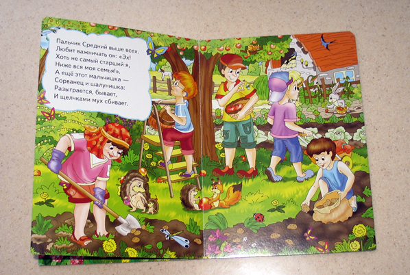 Есть у нас ещё замечательная книжка про братьев пальчиков. По которой мы учим название пальчиков. Купила её случайно на Украине, чтоб было что почитать с сыном в поезде