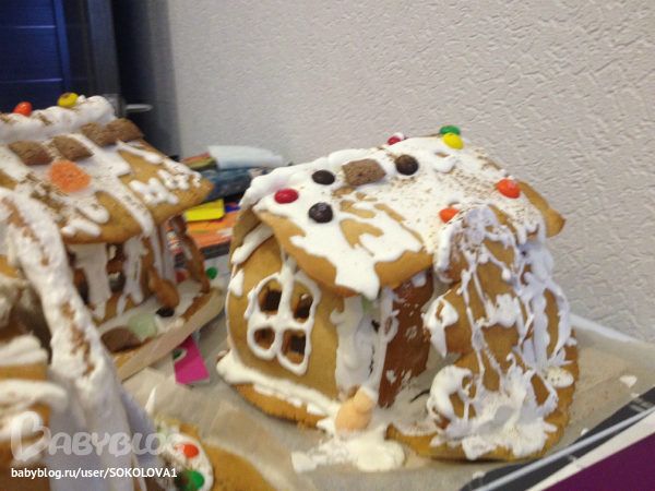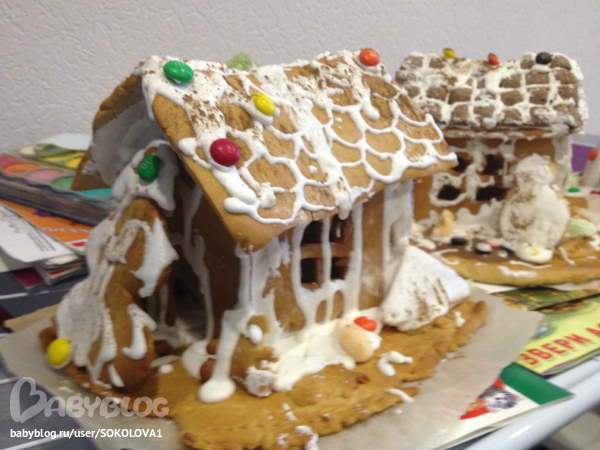 До таких домиков мне терпения наверно не хватит дорасти! Я еще тесто наверно тонко раскатала поэтому не держится ничего! А айсиг делала по рецепту все, не знаю почему так получилось!