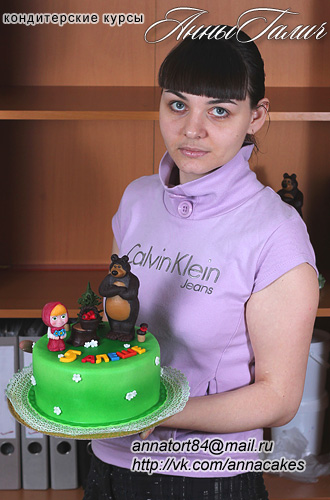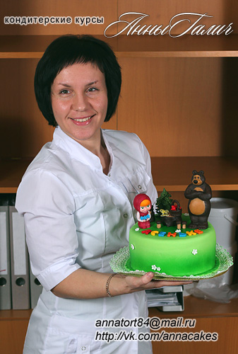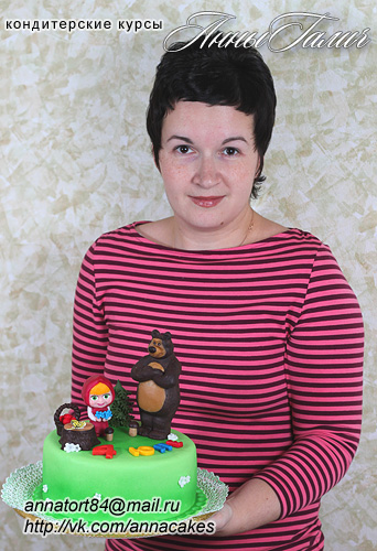 Отчет по двухдневному кондитерскому курсу по торту "Маша и Медведь" + лепка фигурок.