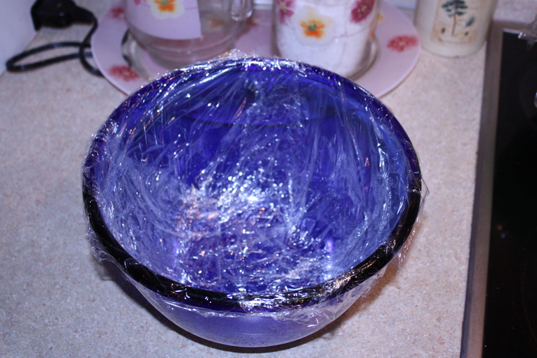 1. Выстилаем пищевой пленкой дно подходящей для Вас чаши. Я использовала салатник.