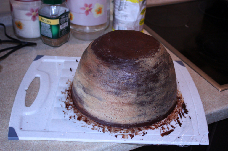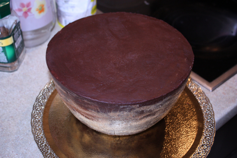 10. Вот такая заготовка должна у вас получиться. Покрываем верхний корж ганашем, переворачиваем и снова ставим охлаждаться.