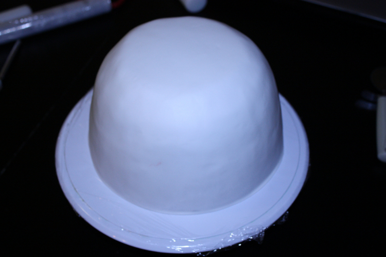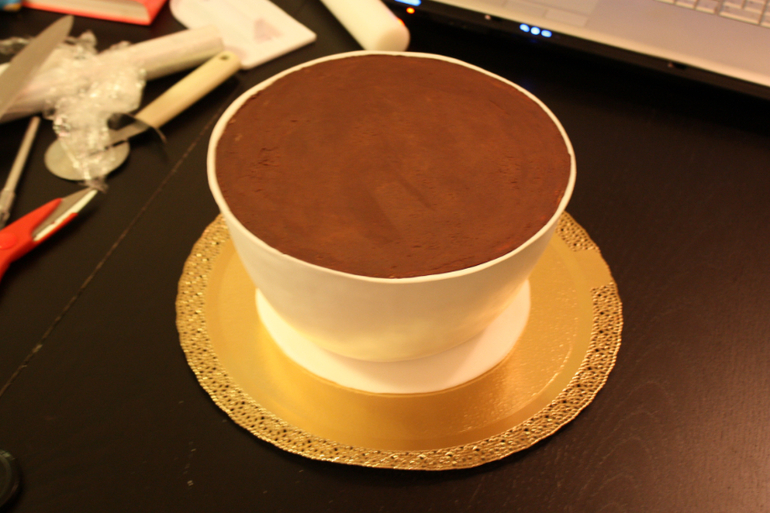 11. Теперь приступаем к декорированию тортика. Покрываем пластом мастики и выравниваем её.