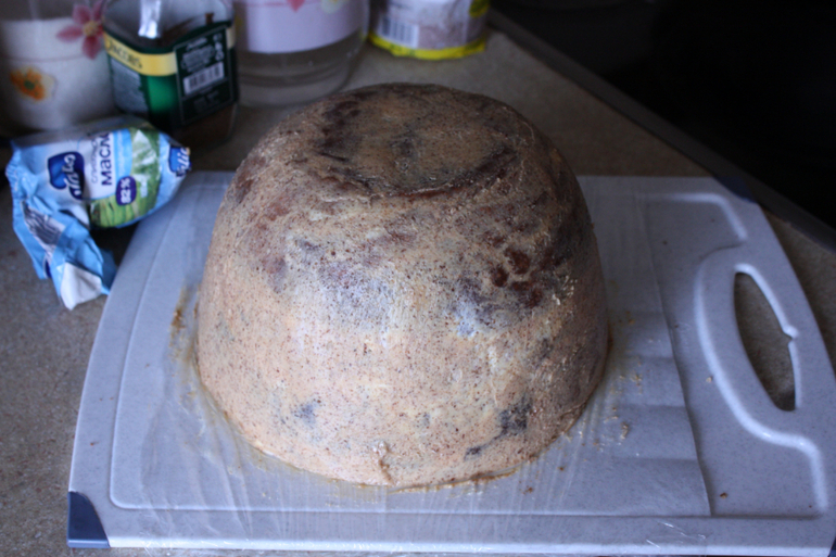 6. Достаём наш спрессованный тортик из формы, перевернув её.