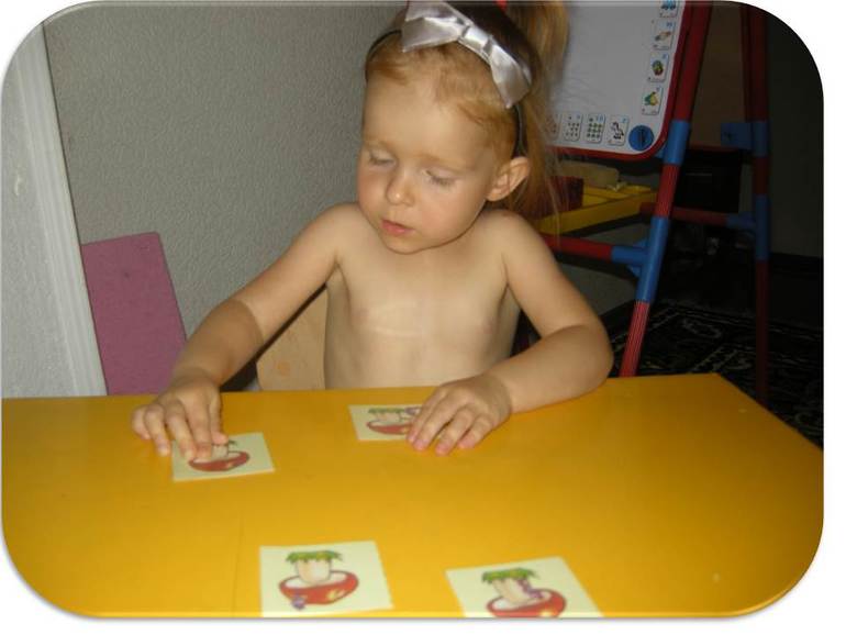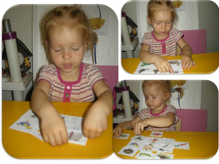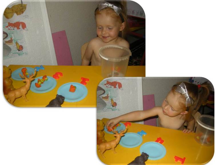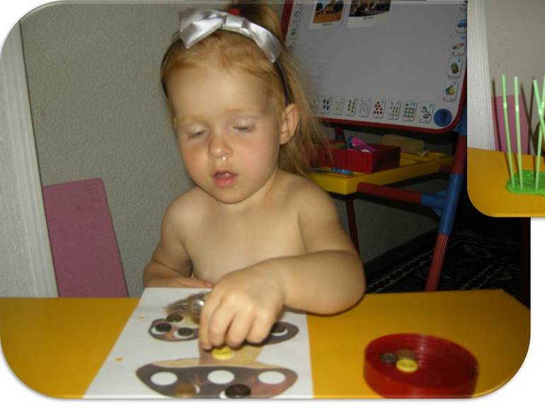Собрали грибы по дому, я разложила по дому и наводками-вопросами направляла Вику